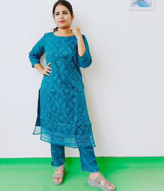 Bluish Green - Kurta and Palazzo Set