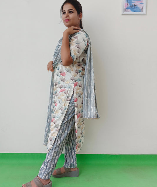 Rayon Cotton Grey Floral Print Women Salwar Set