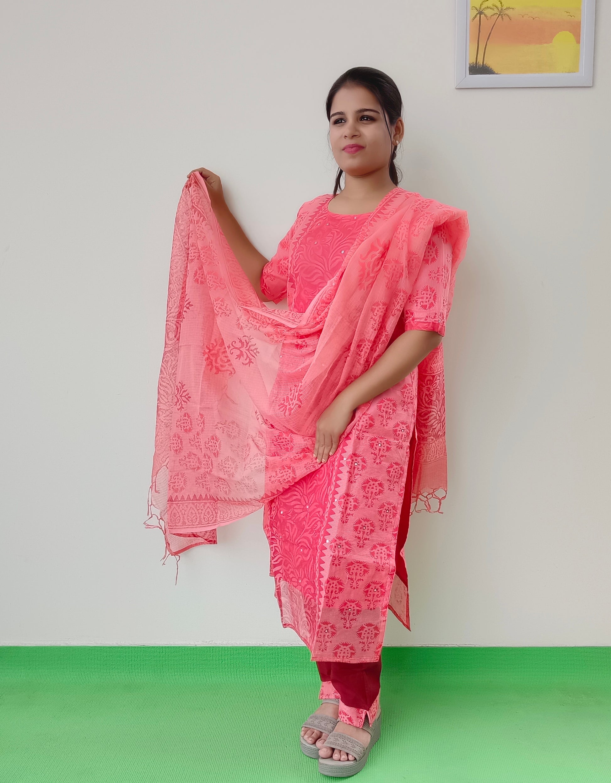 Expertly crafted from soft and luxurious organza fabric, this Peach Kota Organza Salwar Suit is designed for optimal comfort and fit. The delicate peach color adds a touch of elegance, making it the perfect choice for any occasion. Experience the ultimate blend of style and comfort with this beautifully designed salwar suit.
