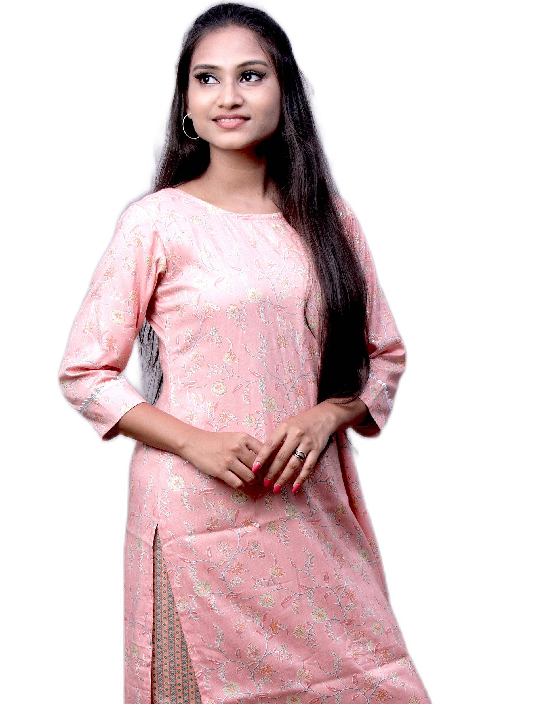 This Charming Floral Print Light color sets from NIRAAS has the perfect style for any event or occasion. It has round Neck and 3/4 Sleeve and specially designed with Silver print will capture your heart and makes it highly impressive also you look fashionable at work place and anywhere. You can wear this stylish Kurta set as casual wear and party wear. It looks gorgeous every time you match it with accessories.